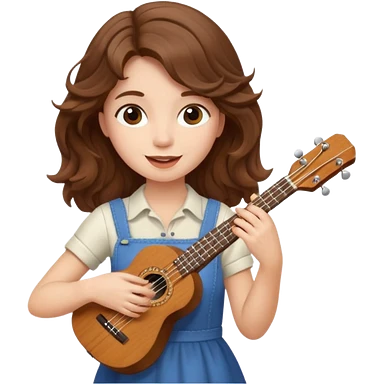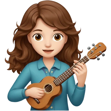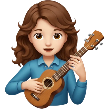 Create a cheerful and compact emoji representing a ukulele. The design should feature the small, wooden body of the ukulele with its smooth curves and visible strings. Highlight the sound hole and fretboard with subtle detailing to show the instrument’s craftsmanship. The wooden finish should be light, such as honey or natural wood tones, with dark accents for the fretboard and bridge. Add musical notes or soundwaves floating around the ukulele to evoke its bright, happy sound. The background should be transparent.emoji