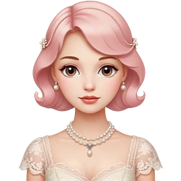 pale skin coquette girl with brown hair, bows, dainty, feminine emoji