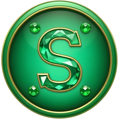 Create a custom emoji badge featuring a stylized, glossy letter “S”. Theme it according to the Emerald rank from League of Legends. Use deep green gemstones, bright emerald glows, and polished metallic framing. Luxurious and clean. emoji | AI Emoji Generator