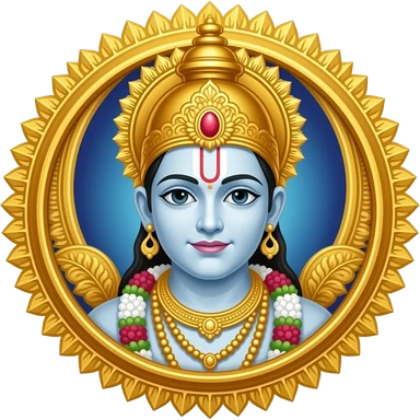 Create a cute and divine emoji of Khatu Shyam Ji with a charming smile, glowing aura around the head, traditional Rajasthani attire, peacock feather on the crown, tilak on the forehead, holding a lotus flower, with a soft golden background and spiritual energy radiating from the emoji face." emoji | AI Emoji Generator