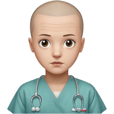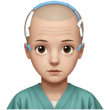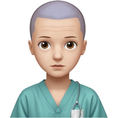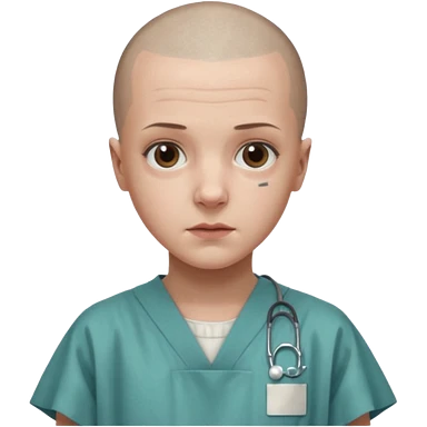 Create a cute emoji-style illustration of Eleven from Stranger Things: round face, big expressive eyes, short brown buzz-cut hair, pink jacket, simple nose and mouth, soft shading, bright colors, clean outline, minimal details, friendly expression, flat emoji style, white or transparent background.emoji
