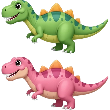 Green dinosaur and pink dinosaur emoji