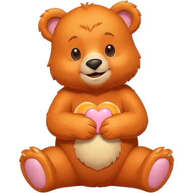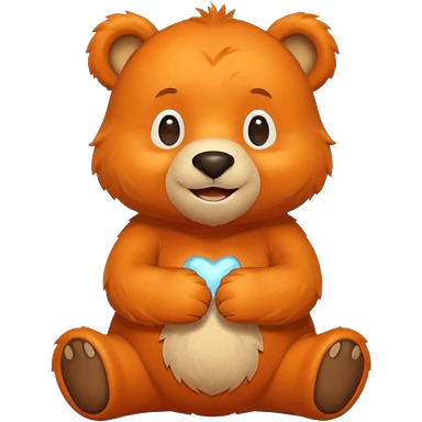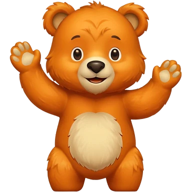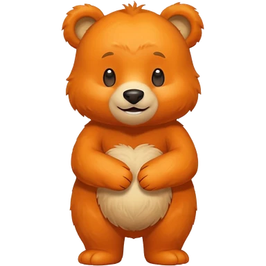 Create a orange friendly bear, make him look like from a kid cartoon and make him smile. Show his whole body. Make him look shy emoji