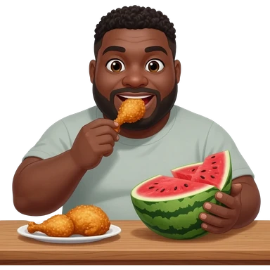 a black fat fat fat fat fat fat fat man eating fried chicken with watermelon emoji