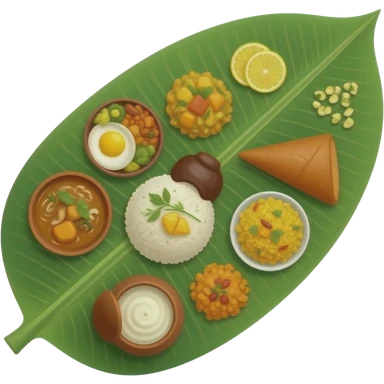 Kerala Sadhya traditional South Indian feast served on a banana leaf with rice, curries, pickles, papadam, and payasam, vibrant and festive, top-down view emoji