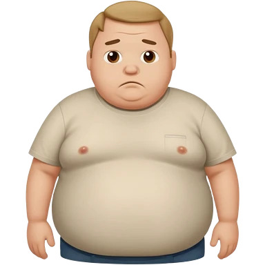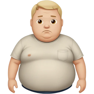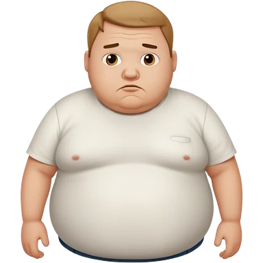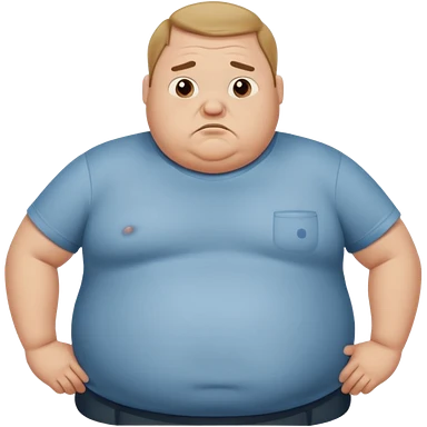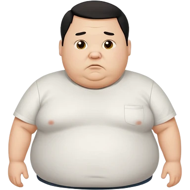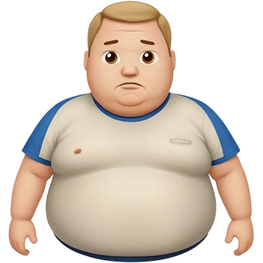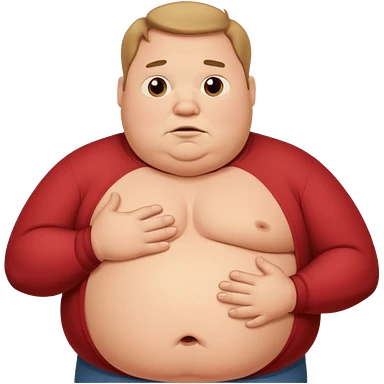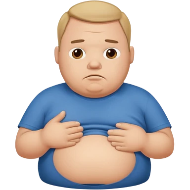 a cartoon fat man holding his stomach wearing t shirt, while looking confused? dont show nipples emoji