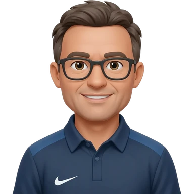 He’s a man with light to medium skin, a defined oval face, full brows, deep-set eyes, and wavy short dark brown tall hair styled with height, sides are trimmed. expression calm and focused relaxed gym training shirt. polished, articulate, and coach vibe. personal development emoji