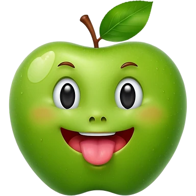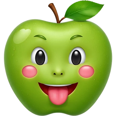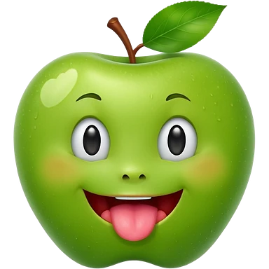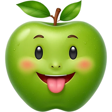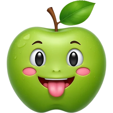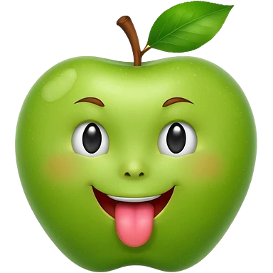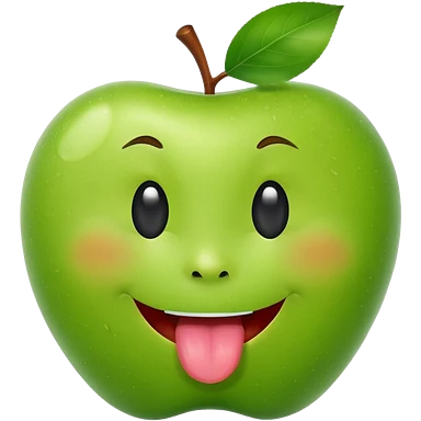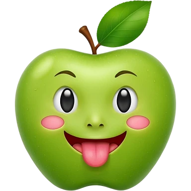 create a happy green apple with a face showing the tongue emoji | AI Emoji Generator