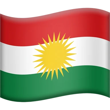 Emoji-style Kurdistan flag: red, white with yellow sun (21 rays), green stripes, bright and simple.” emoji