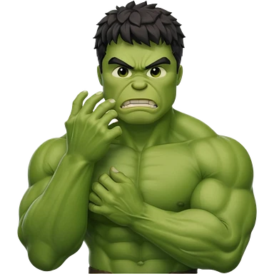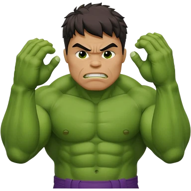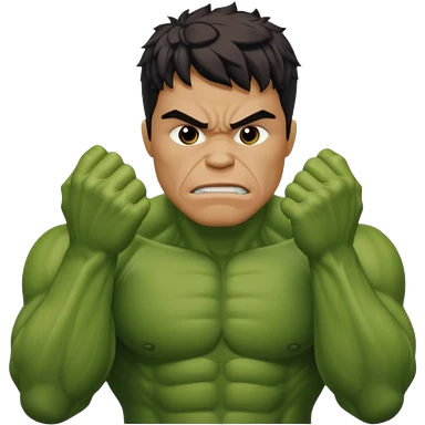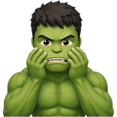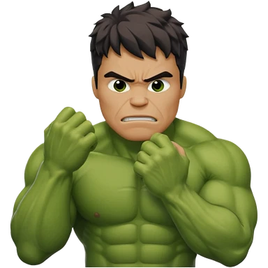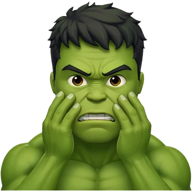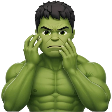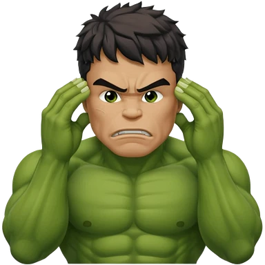 Create a man with brown eyes and dark hair in a crying Hulk costume emoji | AI Emoji Generator