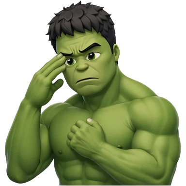 Create a man in a Hulk costume with his hand on his forehead and eyes closed (disappointment) emoji