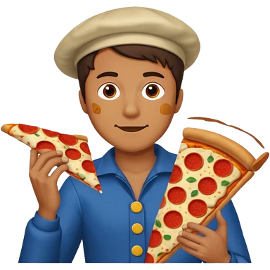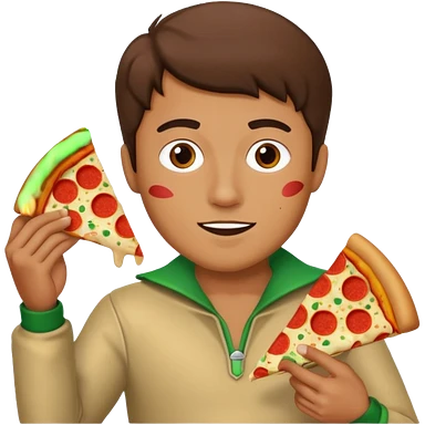 man with brown curly hair, green eyes and a big smile in work costume emoji