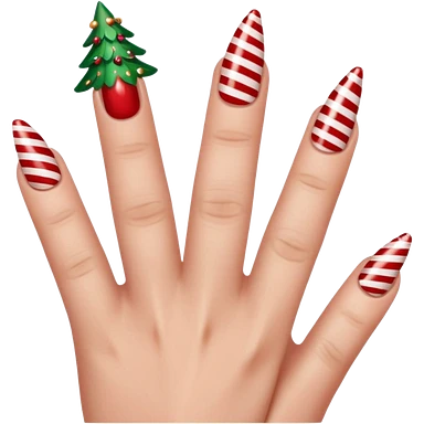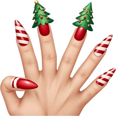 Create a nail design that is red, aesthetically pleasing, Christmas-themed, and girly. There are five fingers. emoji