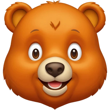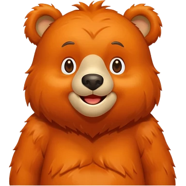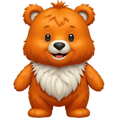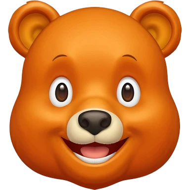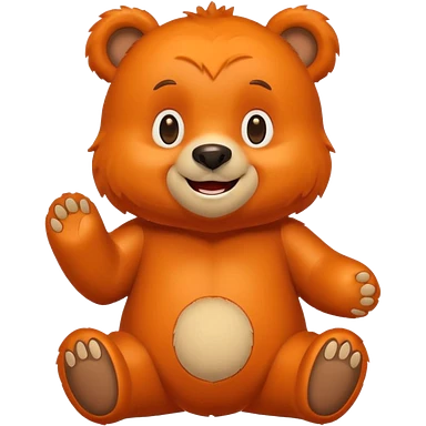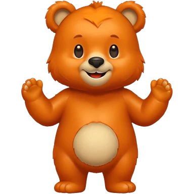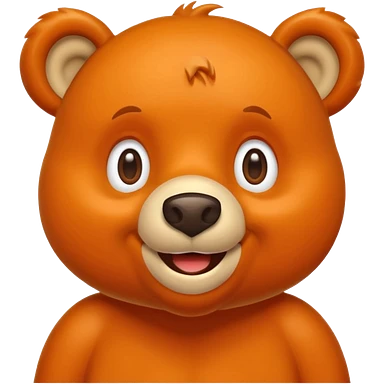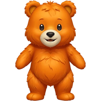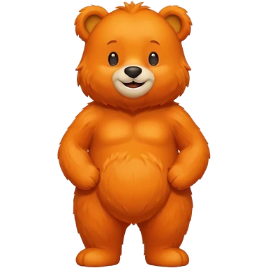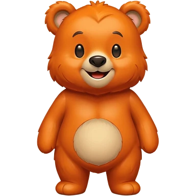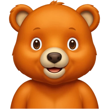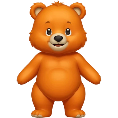 Create a orange friendly bear, make him look like from a kid cartoon and make him smile. Show his whole body. Make him look shy and cross his leg while pointing his index finger towards each other emoji | AI Emoji Generator