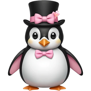 Create a penguin with a top hat and a cute pink bow on its stomach emoji | AI Emoji Generator