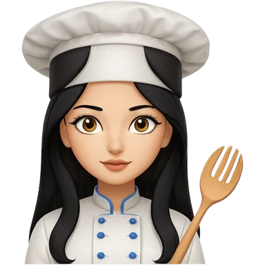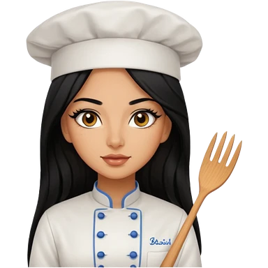 Create a persian girl, black hair, Middle Eastern with lashes chef🧑🍳 emoji, barbie vibes tan skin black long hair with long lashes BADDIE VIBES long black hair and tanned skin dark brown eyes and longer baddie lashes emoji | AI Emoji Generator