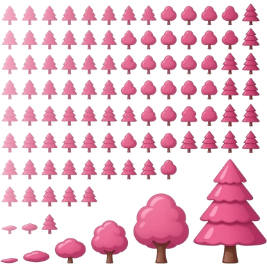 create a pink cherry tree emojis from 0 to 100, there 0 is the seed and the 100 is the full tree. with more than tre levels and near to the real one emoji