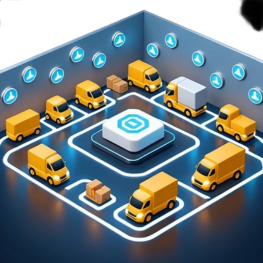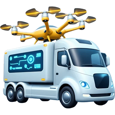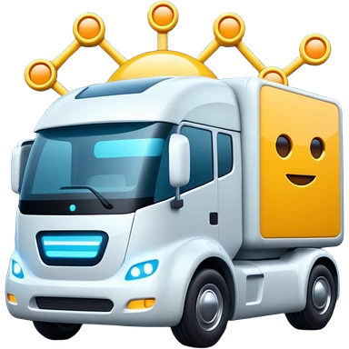 create a realistic emoji of a futuristic warehouse automation. A autonomous trucks, smart drones, and glowing data networks can be part of it as well — cinematic lighting, innovation atmosphere. emoji | AI Emoji Generator