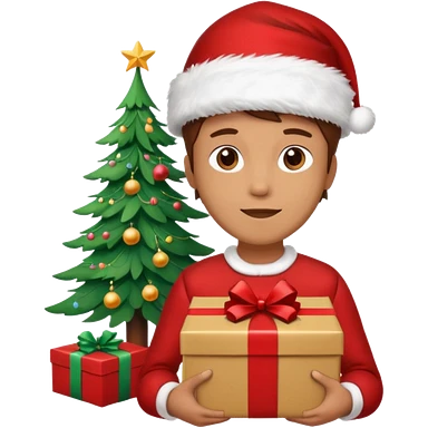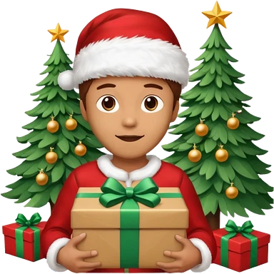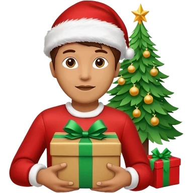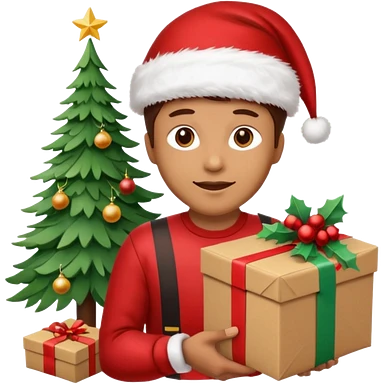 create a realistic emoji of a packaging woker under a christmas tree emoji