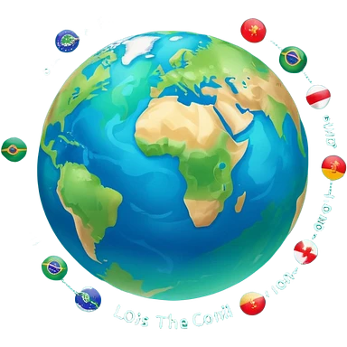 Create a realistic emoji of a text flying around an earth ball. the text includes multiple languages or language signs emoji