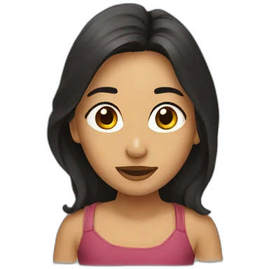 A White Woman with big mouth and pixie straight dará brown hair emoji