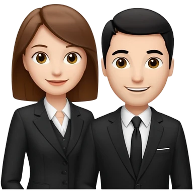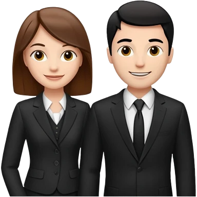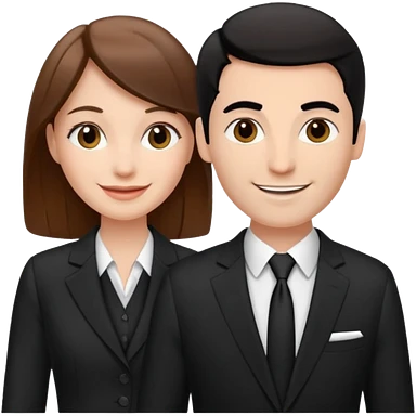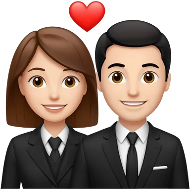 white woman with brown hair and white man with black hair in suits partnership emoji