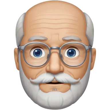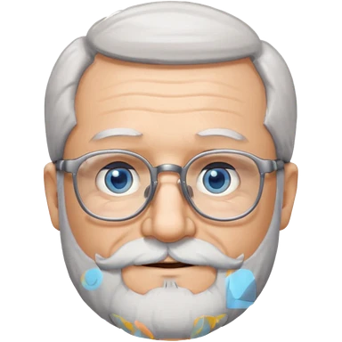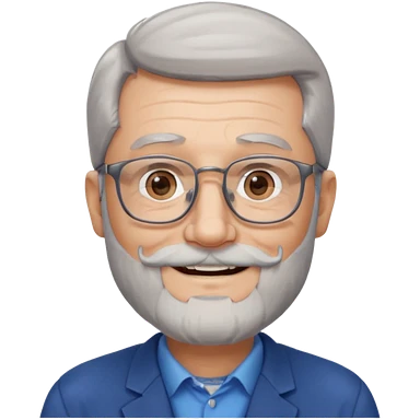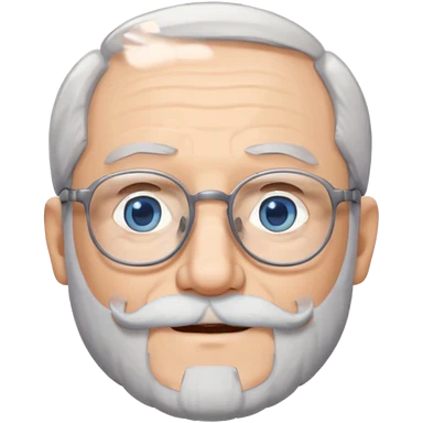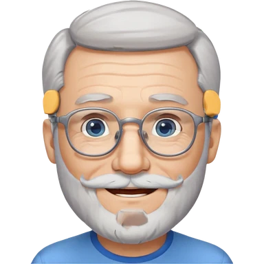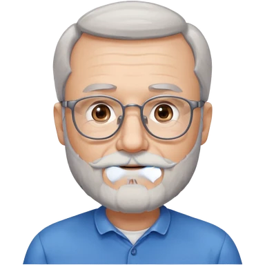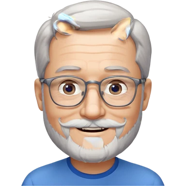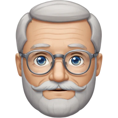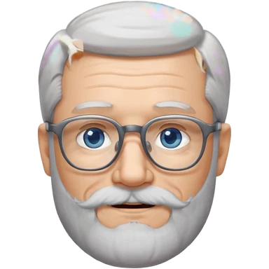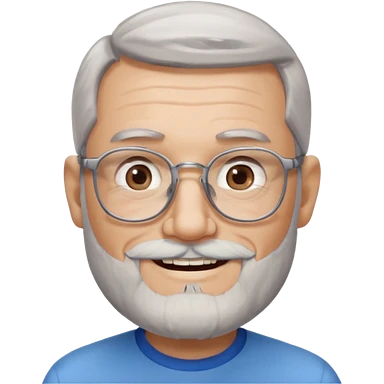 Create me an emoji of an old man. Gray really short size hair. Gray follow-up full beard. Squarer Glasses. Blue eyes. Little smile emoji