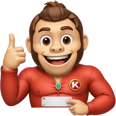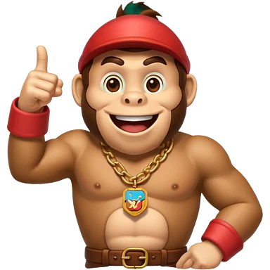 Can you create a humorous donkey kong emoji that sarcasticly points to an extra large role tag of "CTO" pinned on the chest of donkey kong. should look excessively proud with broad smile emoji