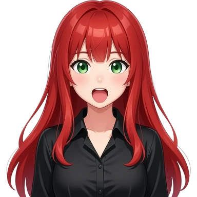 anime girl sexy expression long red hair green eyes black shirt emoji