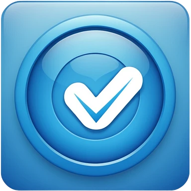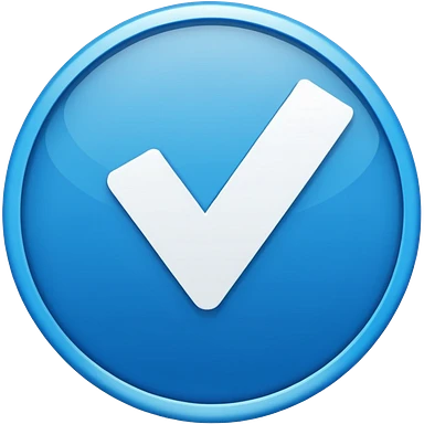 Create a simple, modern verification badge icon. The badge should have a soft, rounded star-like shape with two halves—one light cyan and one light blue—split vertically. In the center, include a bold white checkmark. emoji | AI Emoji Generator