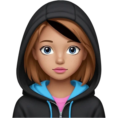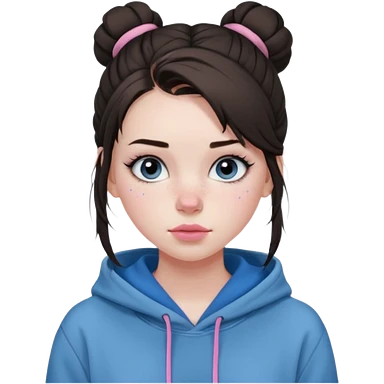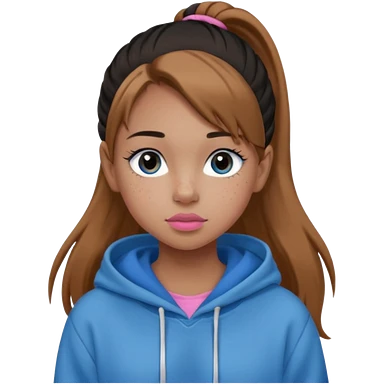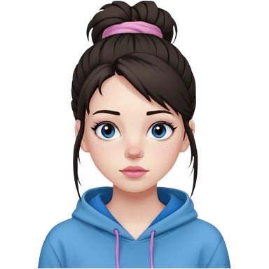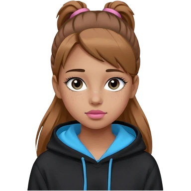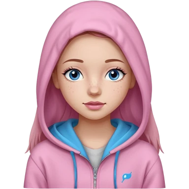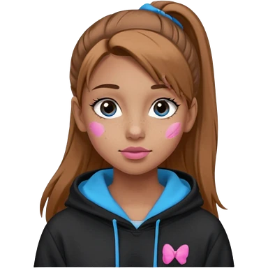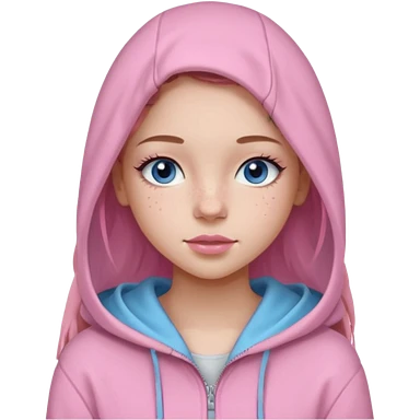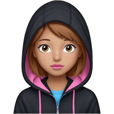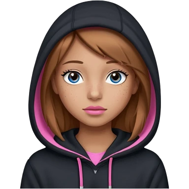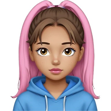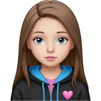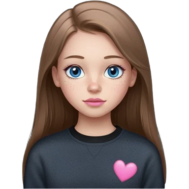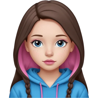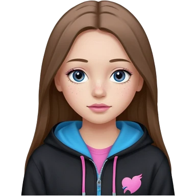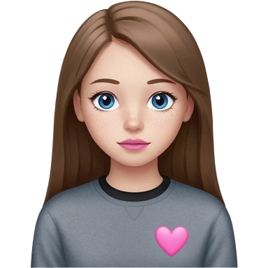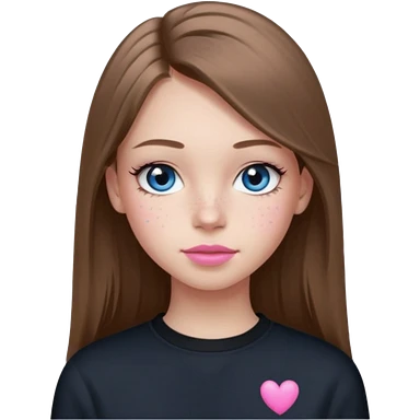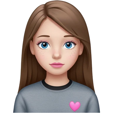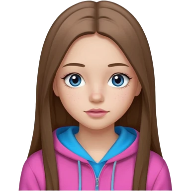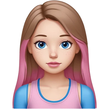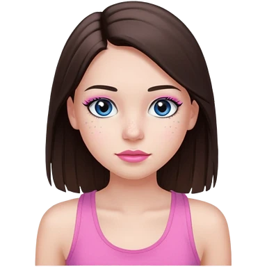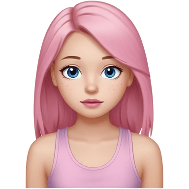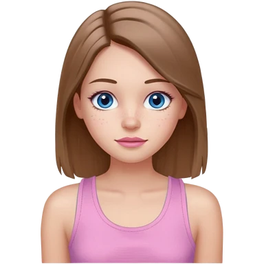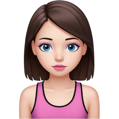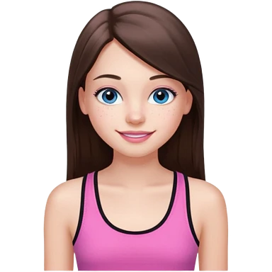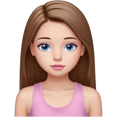Create a teenage girl with long and straight brunette hair, light skin, light freckles, and blue-grey eyes. She will have pink lips and long black eyelashes. She will be wearing a pink tank top. emoji | AI Emoji Generator