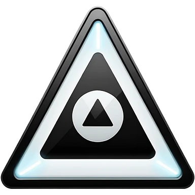 Minimalistic warning triangle emoji, metallic black and white, glowing edges in white, flat vector style, futuristic UI icon emoji