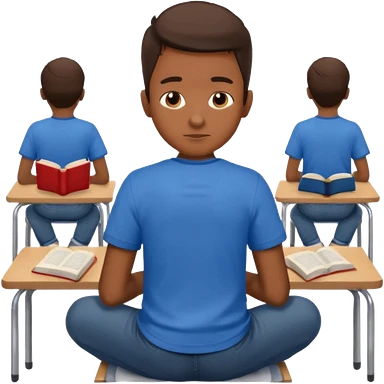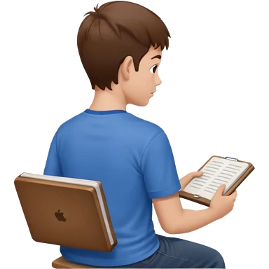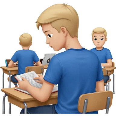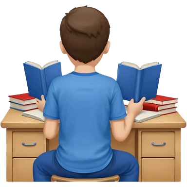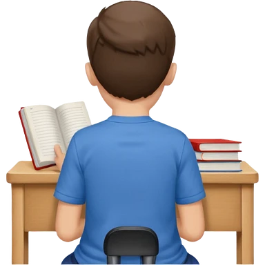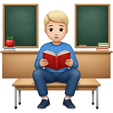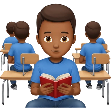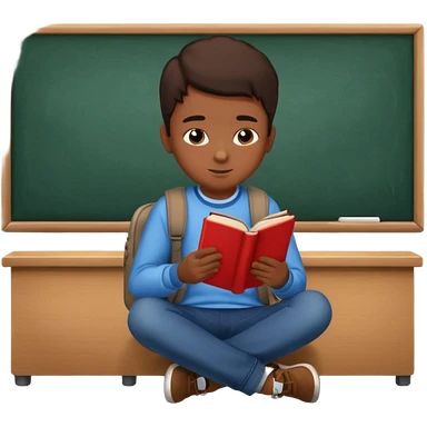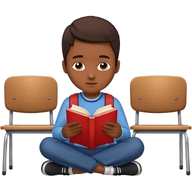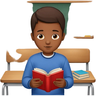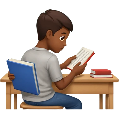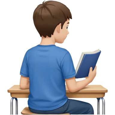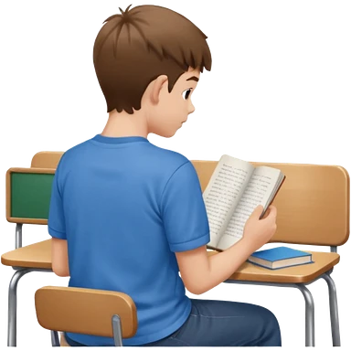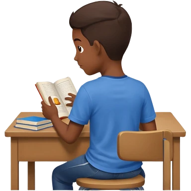Boy sitting at school reading with his back to the camera emoji