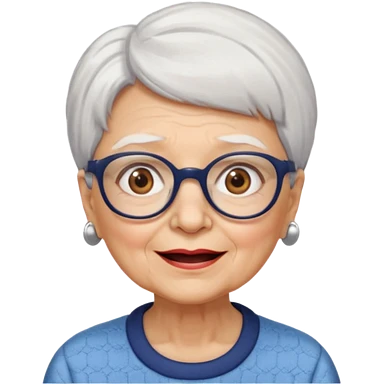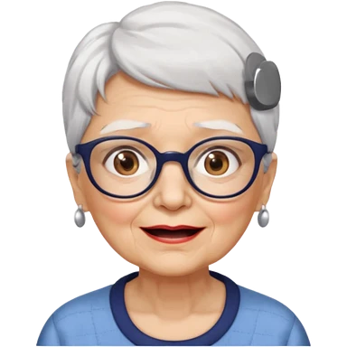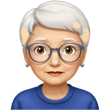 Create me emoji of an old lady. Short white hair to left side. Square glasses. Brown eyes. Rounded really big and wide face. Wide nose. Big mounth emoji
