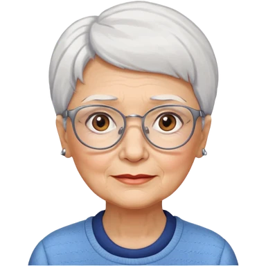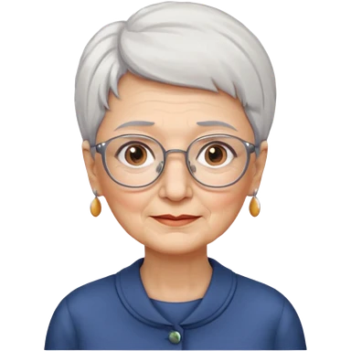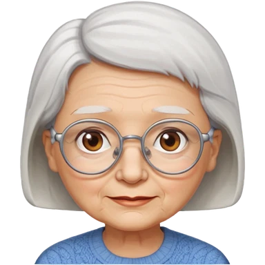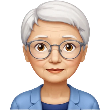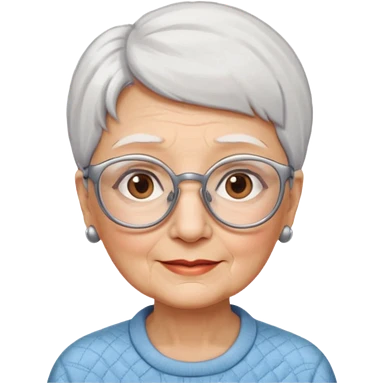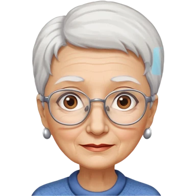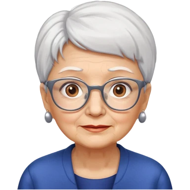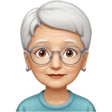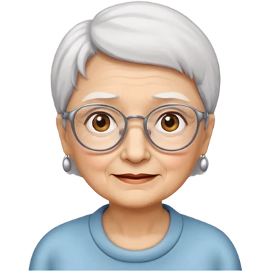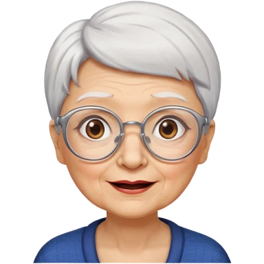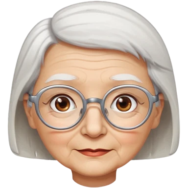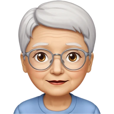 Create me emoji of an old lady. Short white hair to left side. Square glasses. Brown eyes. Rounded bigger face. Wide nose emoji