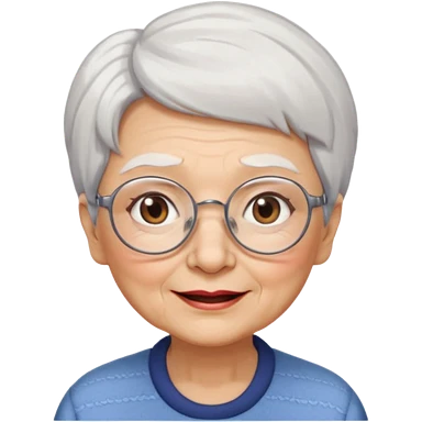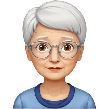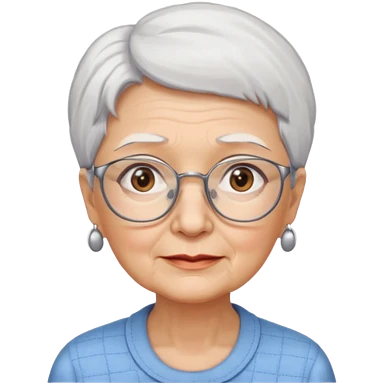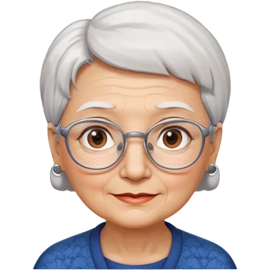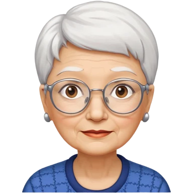 Create me emoji of an old lady. Short white hair to left side. Square glasses. Brown eyes. Rounded really big and really wide face. Wide nose. emoji