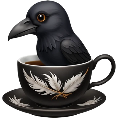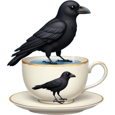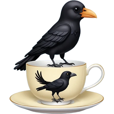 create a crow hoalding tea cup 2d emoji