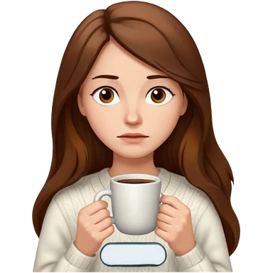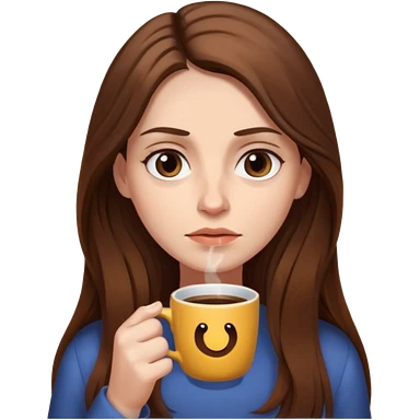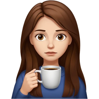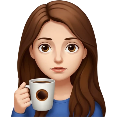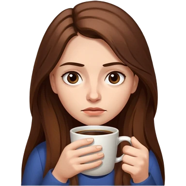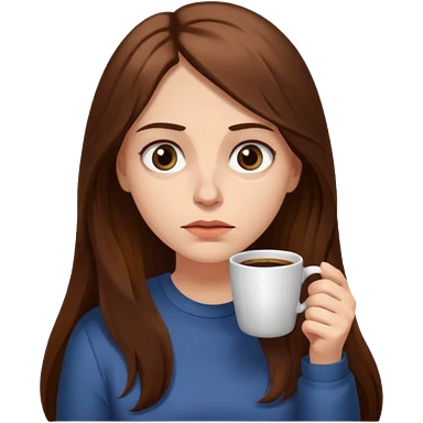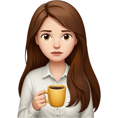 create a woman long hair brown, holding her cup of coffee looking exausted emoji