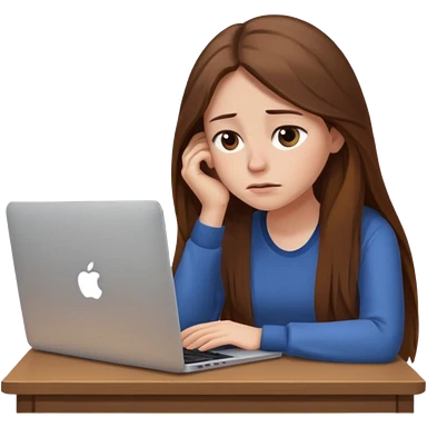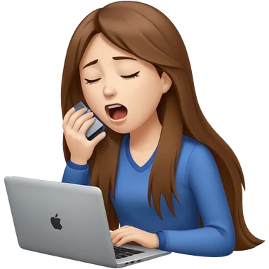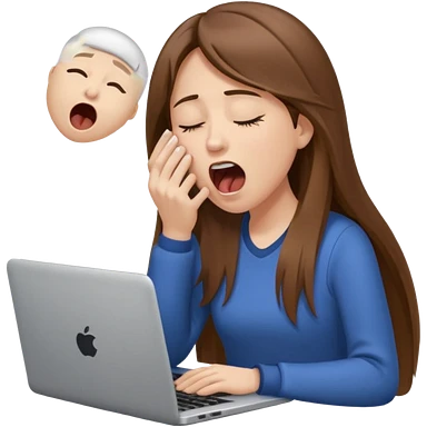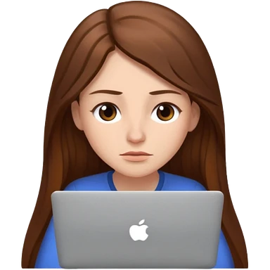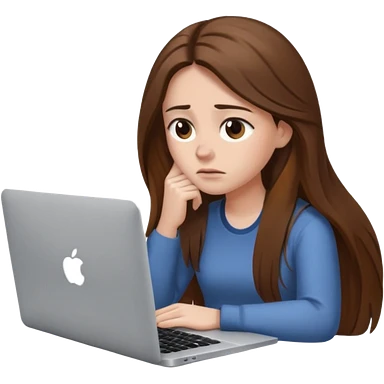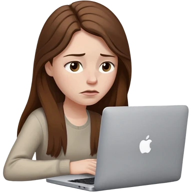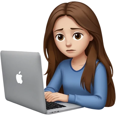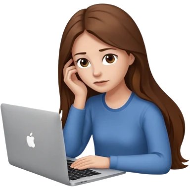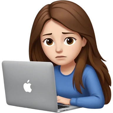 create a woman long hair brown, sitting with her macbook looking tired emoji | AI Emoji Generator