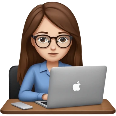 Girl in glasses,brown long hair, brown blouse, sitting with gray MacBook emoji