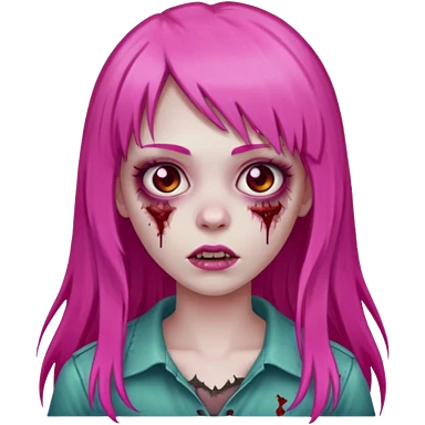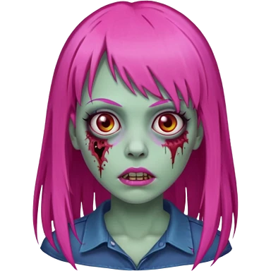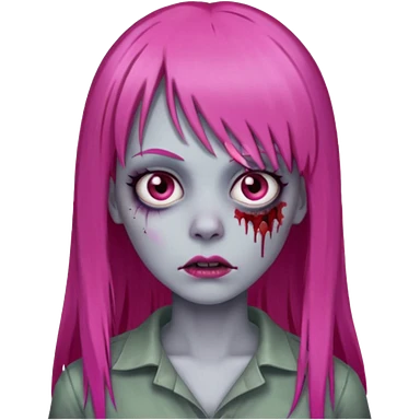 Create a female zombie emoji with long, straight hair in hot pink and bangs. emoji