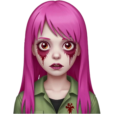 Create a zombie emoji in the style of an iPhone emoji, longo Hot pink hair emoji