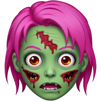 Create a zombie emoji in the style of an iPhone emoji, Hot pink hair