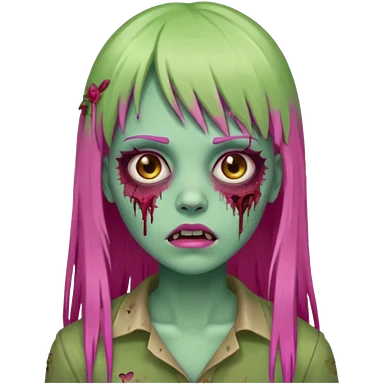 Create a zombie emoji in the style of an iPhone emoji, Hot pink hair emoji