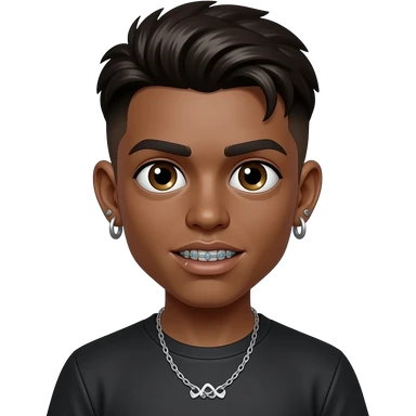 Young brown zombie with earrings and a low taper fade with braces emoji