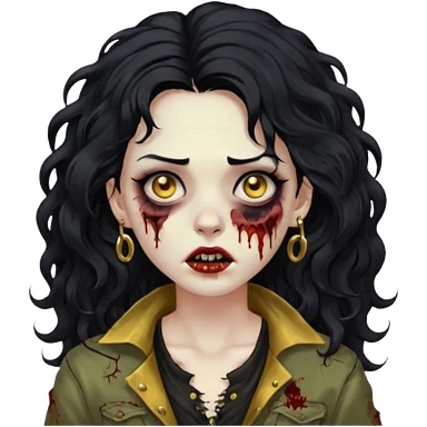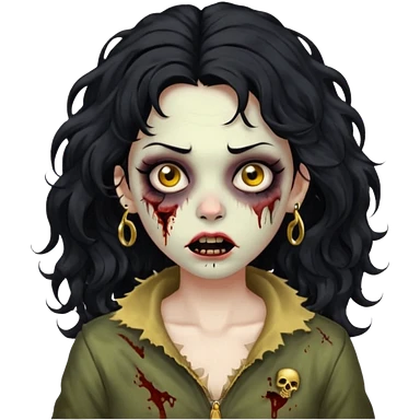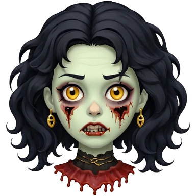 DRAW A ZOMBIE IMAGE OF A WOMAN WITH WAVY BLACK HAIR AND A MOUTH PIERCING emoji