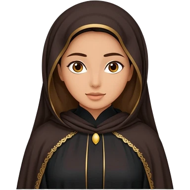 create an emoji of a girl wearing a shayla (شيله) and abaya, brunette girl (her hair shows ofc it is not a hijab) like more of a khaleeji shayla. also she is muslim emoji