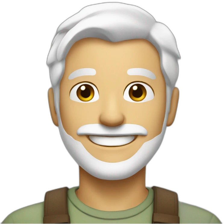 Create an emoji of a man smiling, with white hair and with a short but neat white beard