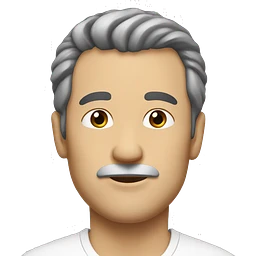 Create an emoji of a man smiling, with white hair and with a short but neat white beard and moustache emoji