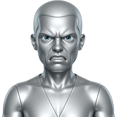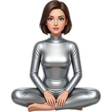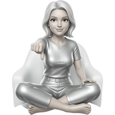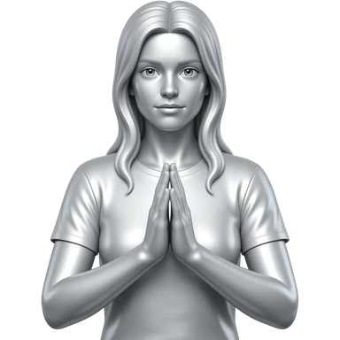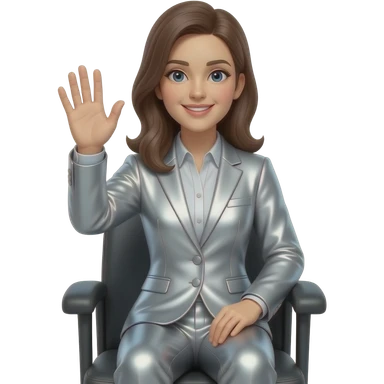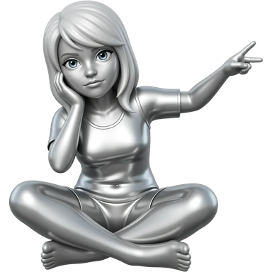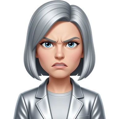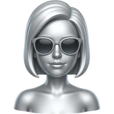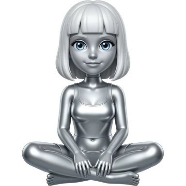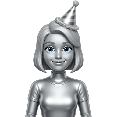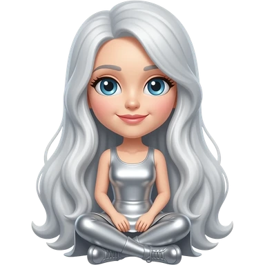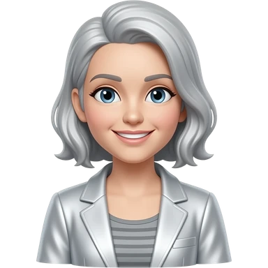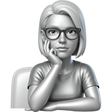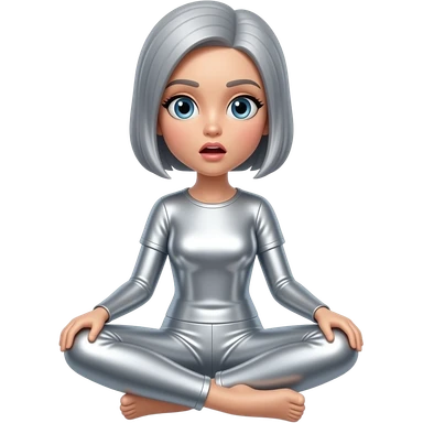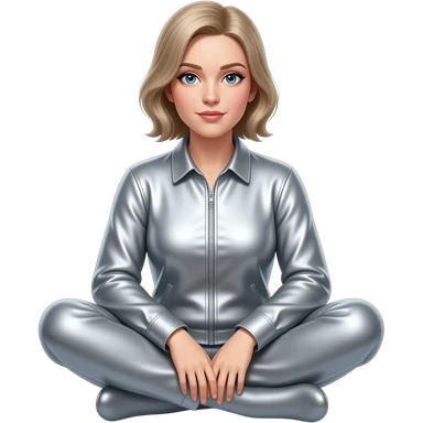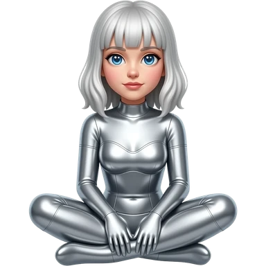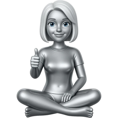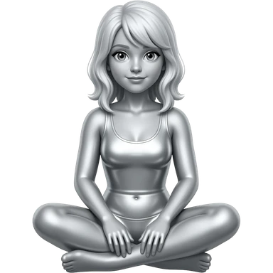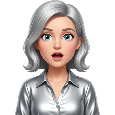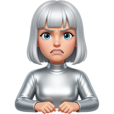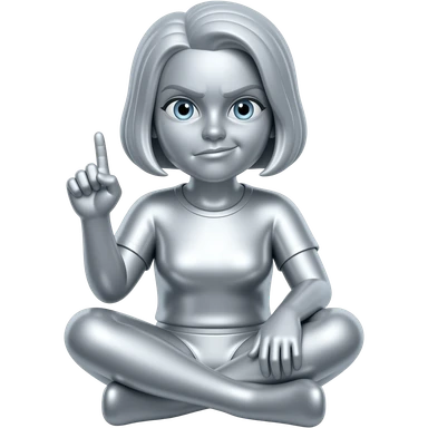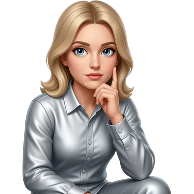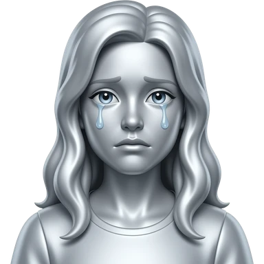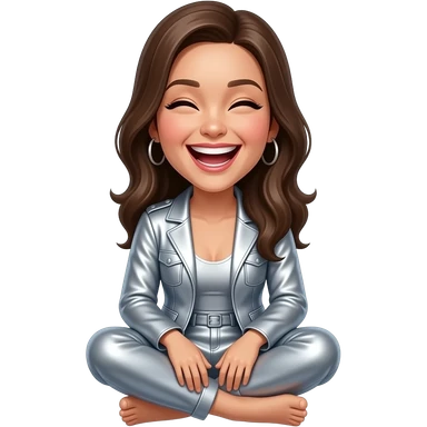 Create an emoji of a seated woman in metallic silver. The woman is making a laughing-crying face expression. The background is white. The final result must have maximum resolution, high contrast, and extreme sharpness. Illustration style: Vintage – Art Deco – 2D emoji | AI Emoji Generator